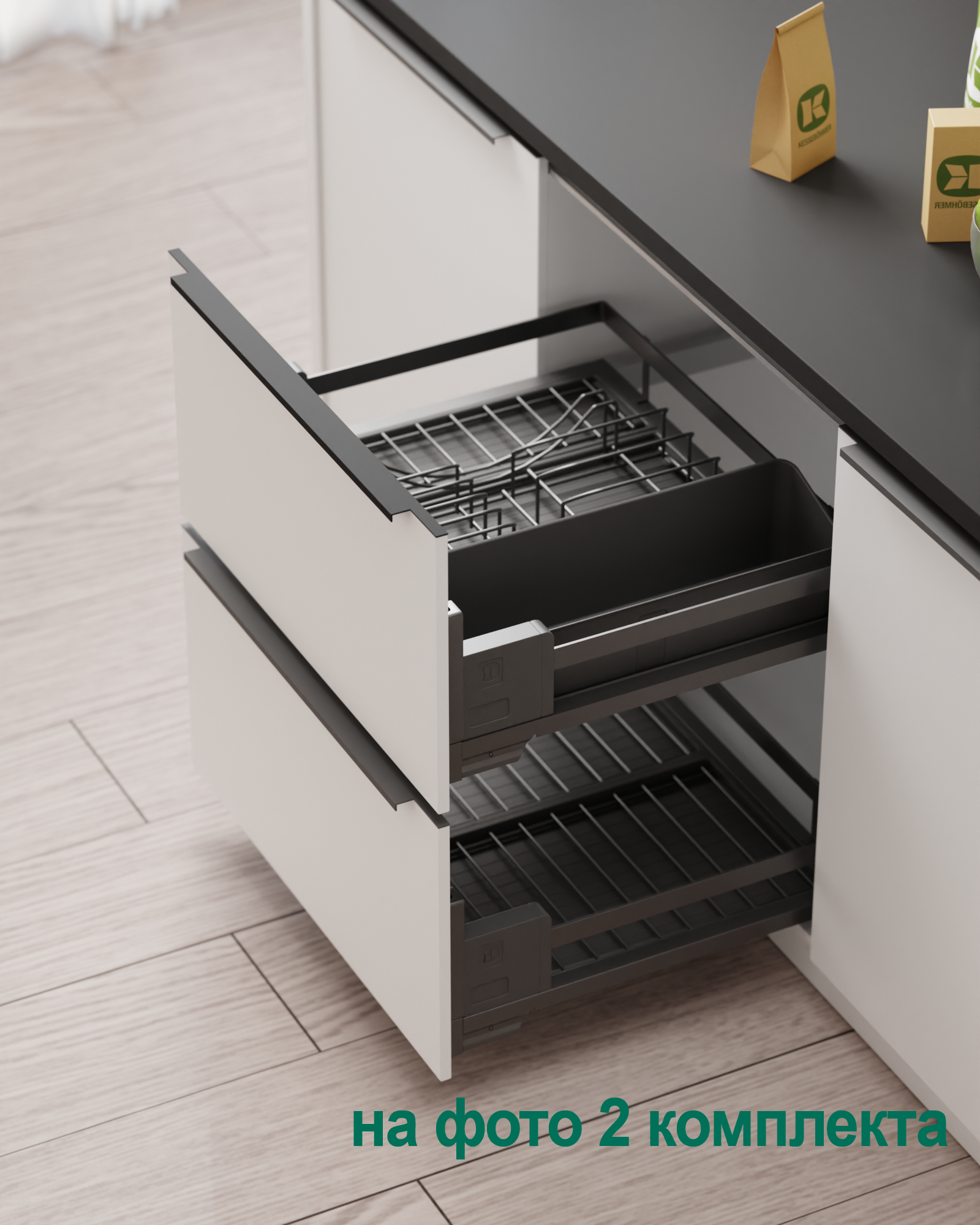 Модель — 1 большой модуль для посуды + 1 малый модуль с решеткой + модуль для столовых приборов