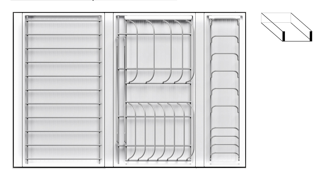 • 1 большой модуль для посуды + 1 большой модуль с решеткой + 1 малый модуль для посуды