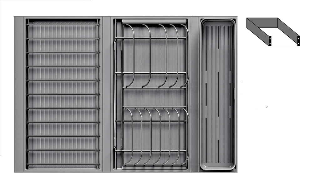 Модель — 1 большой модуль для посуды + 1 большой модуль с решеткой + модуль для столовых приборов