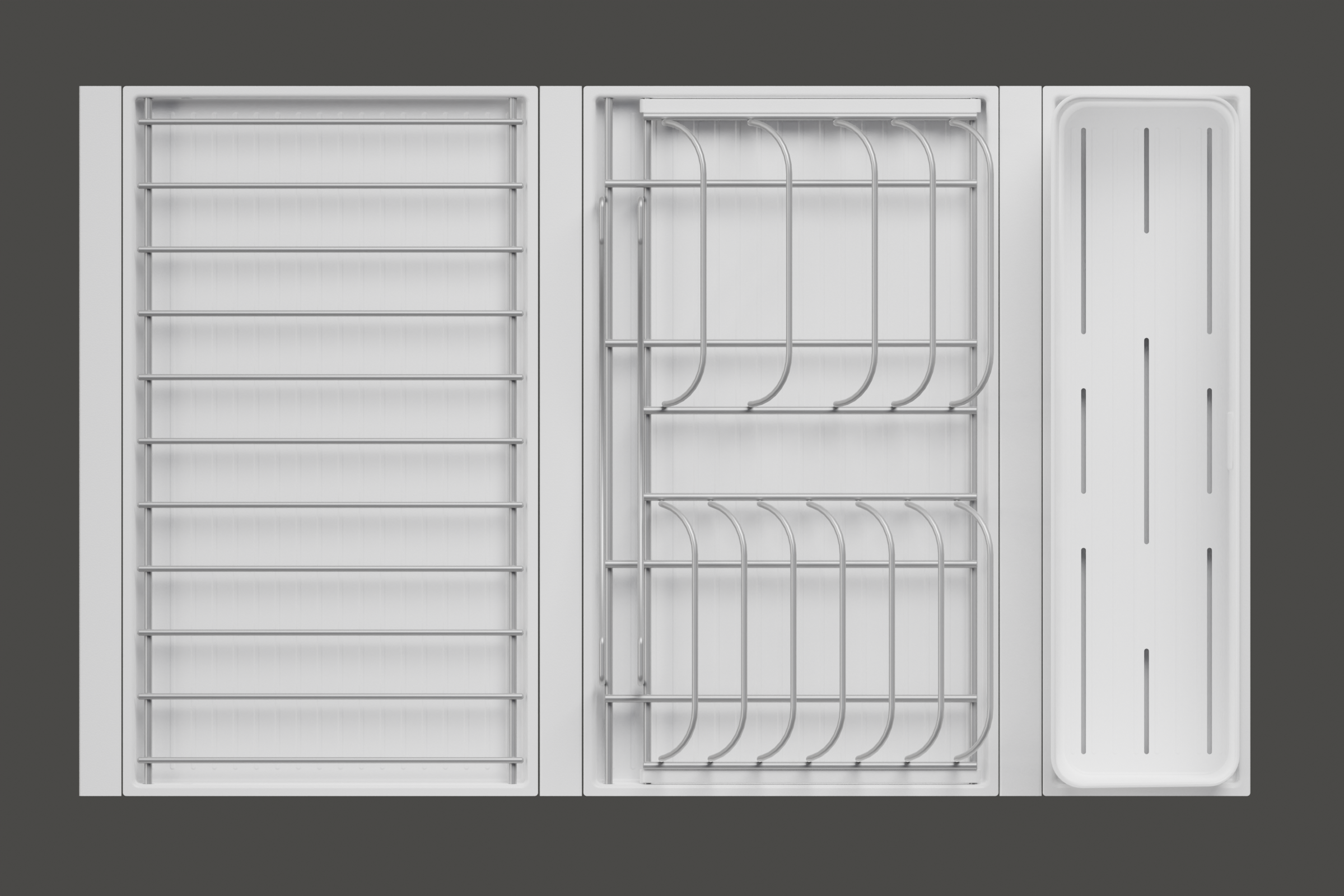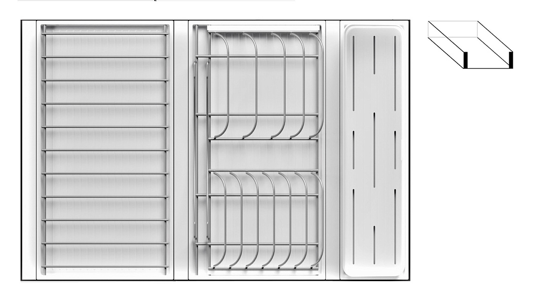 - 1 большой модуль для посуды + 1 большой модуль с решеткой + модуль для столовых приборов